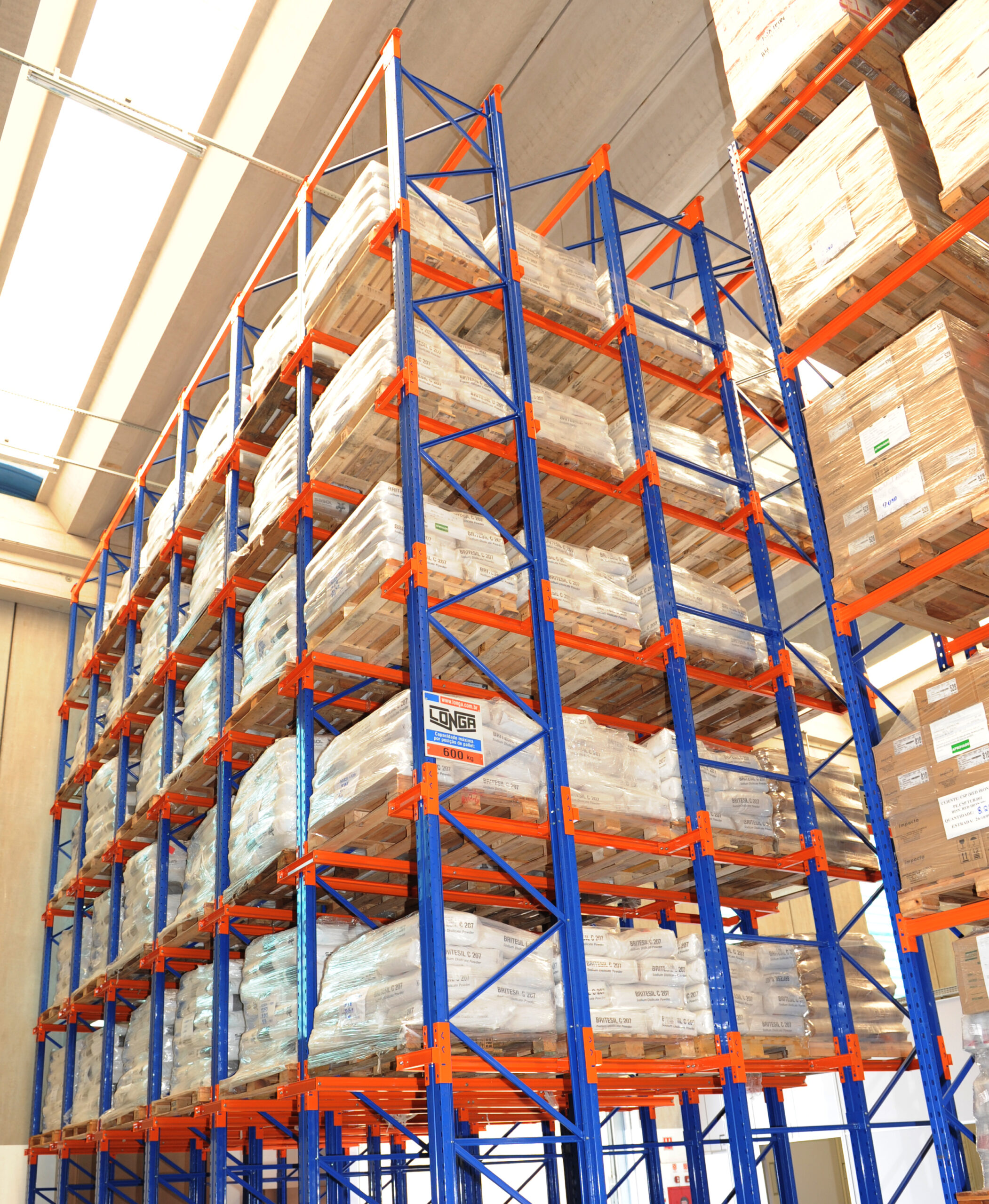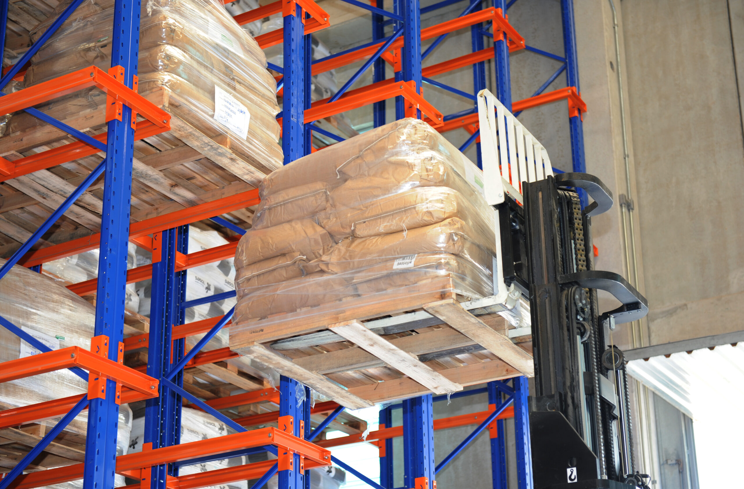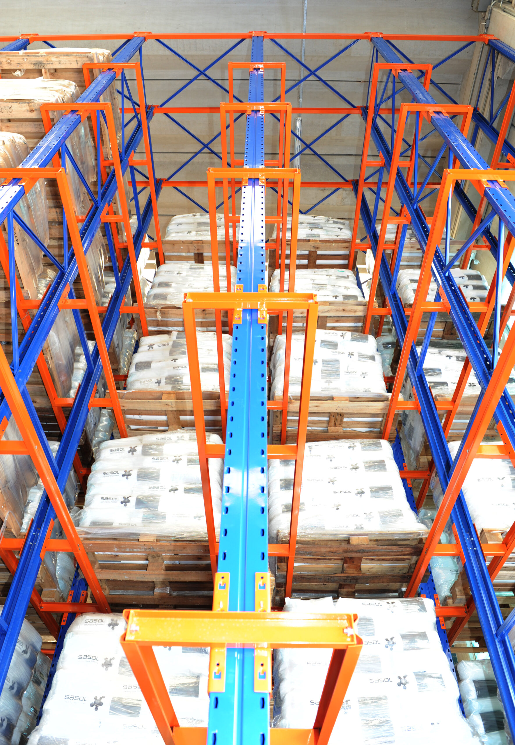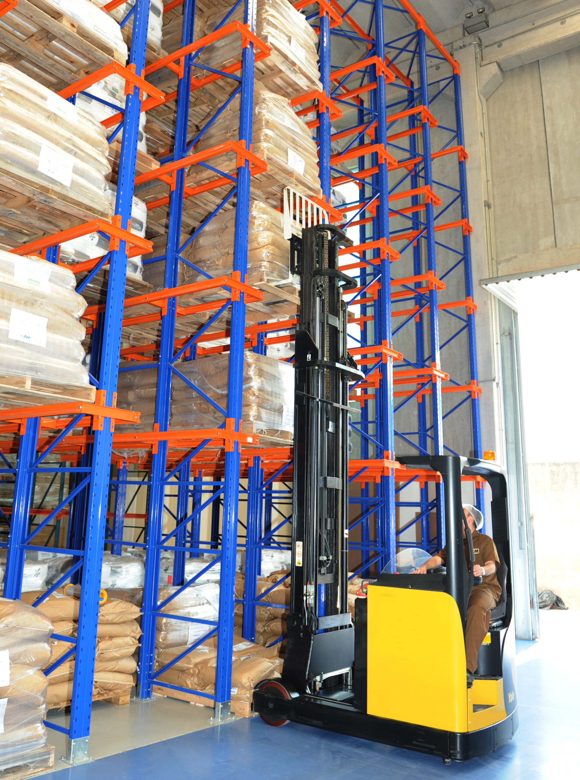 A estrutura de armazenagem Drive-in é uma solução altamente eficiente para a armazenagem por compactação de produtos em grande volume e com um SKU (unidade de manutenção de estoque) específico. Esse sistema é composto por estantes que formam corredores internos de armazenamento, permitindo o tráfego de empilhadeiras dentro da estrutura para realizar as operações de entrada e saída de paletes.