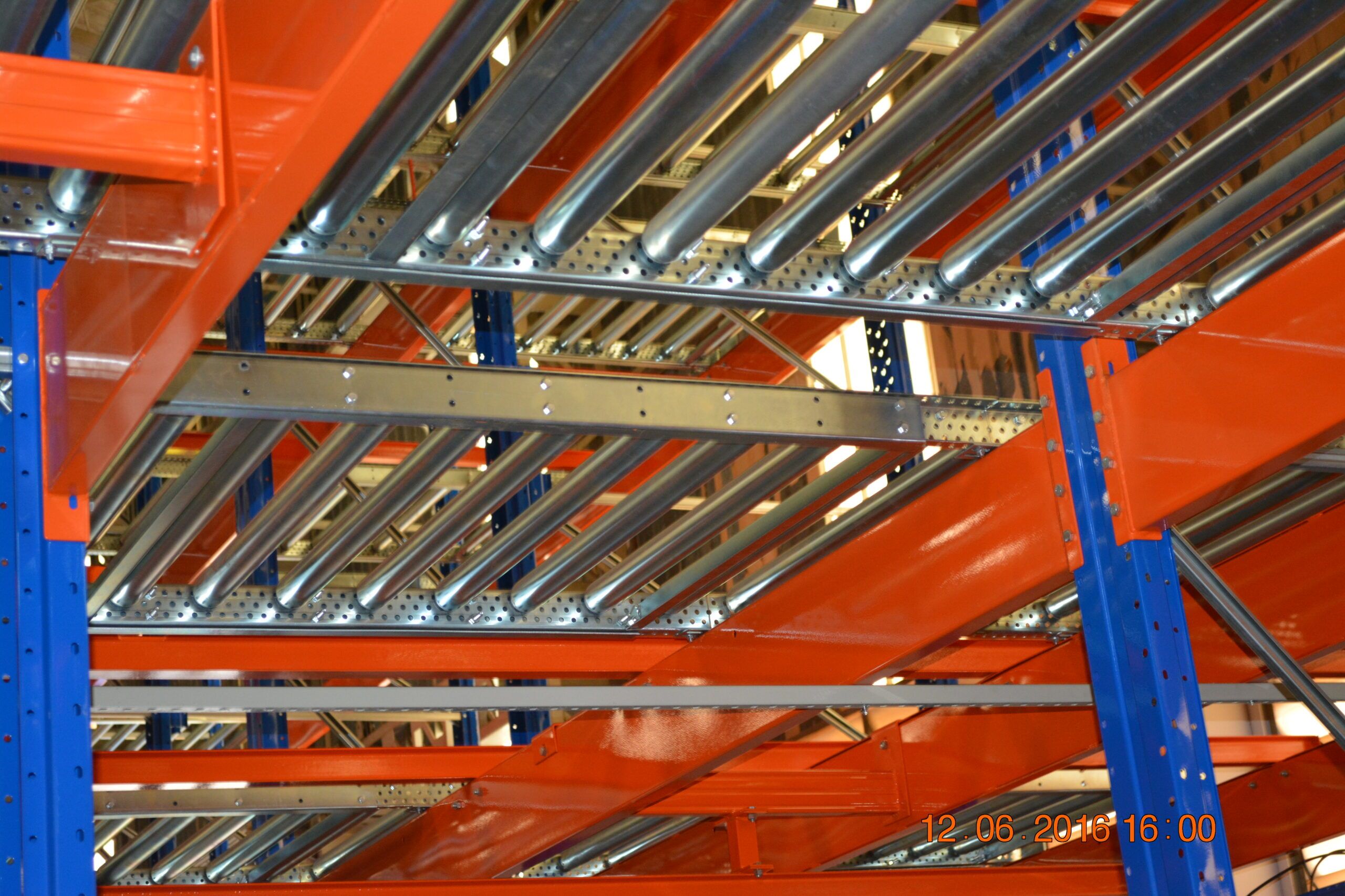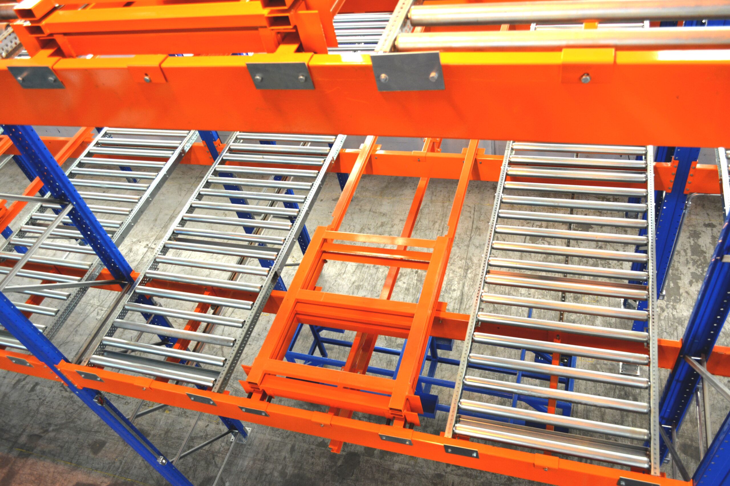 Formado por pistas de roletes, neste sistema devem ser utilizados apenas paletes de madeira com as ripas de apoio no sentido contínuo do fluxo.