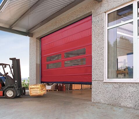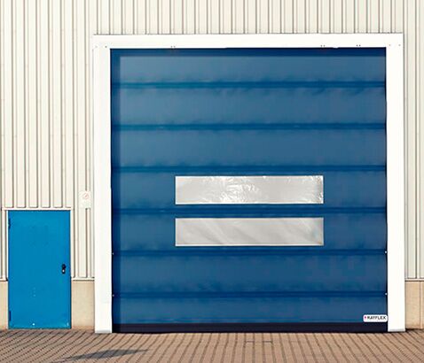 A lona da porta é resistente às cargas de vento devido aos tubos horizontais que se encaixam nas laterais da porta, dando maior resistência. A elevação da lona para abertura da porta é realizada por meio de cintas de alta resistência que se enrolam ao cilindro e promovem o empacotamento das seções.